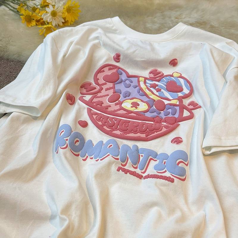 nVyK发泡小熊短袖T恤女2021年新款国潮小众设计感宽松情侣半袖ins