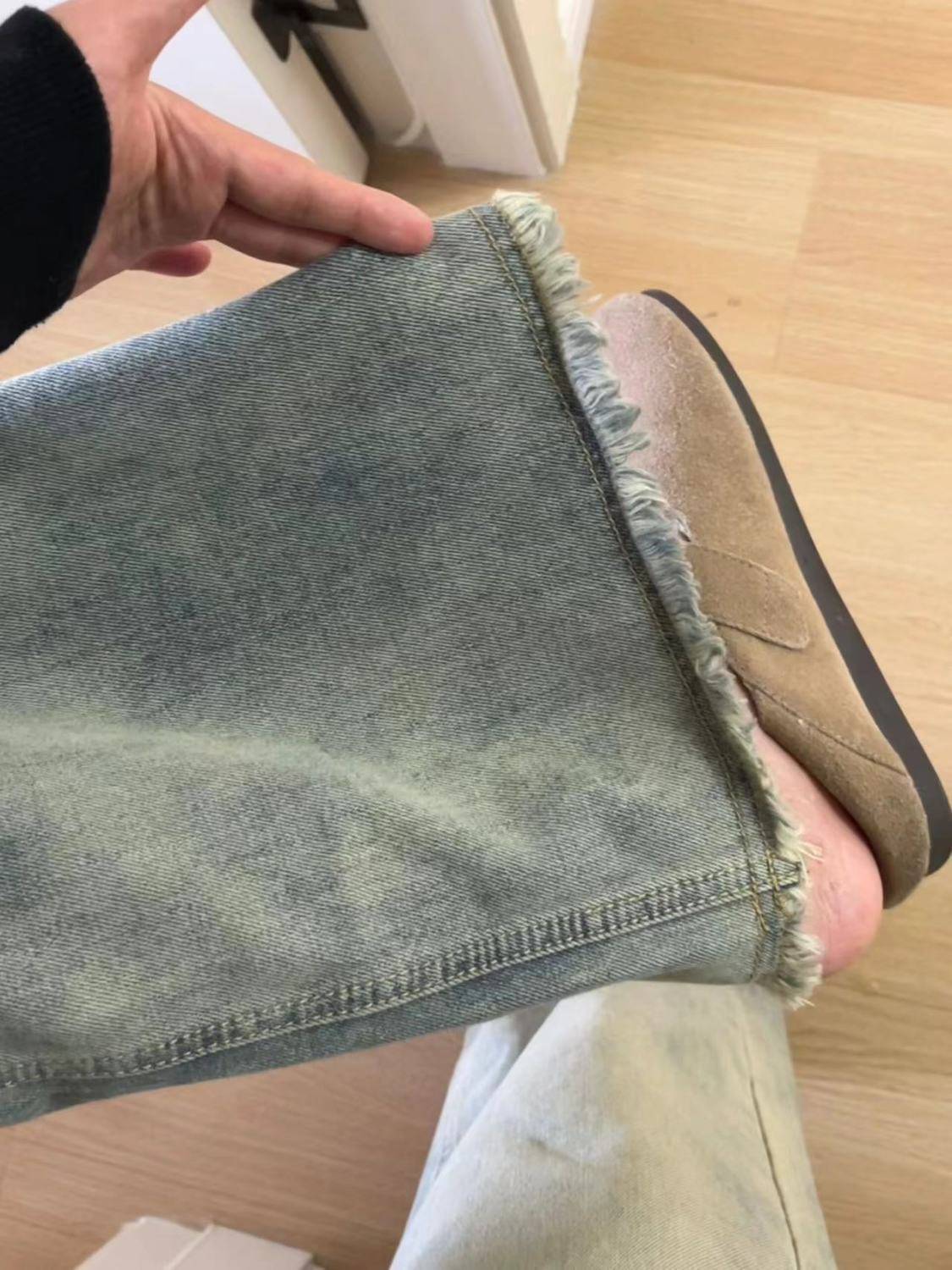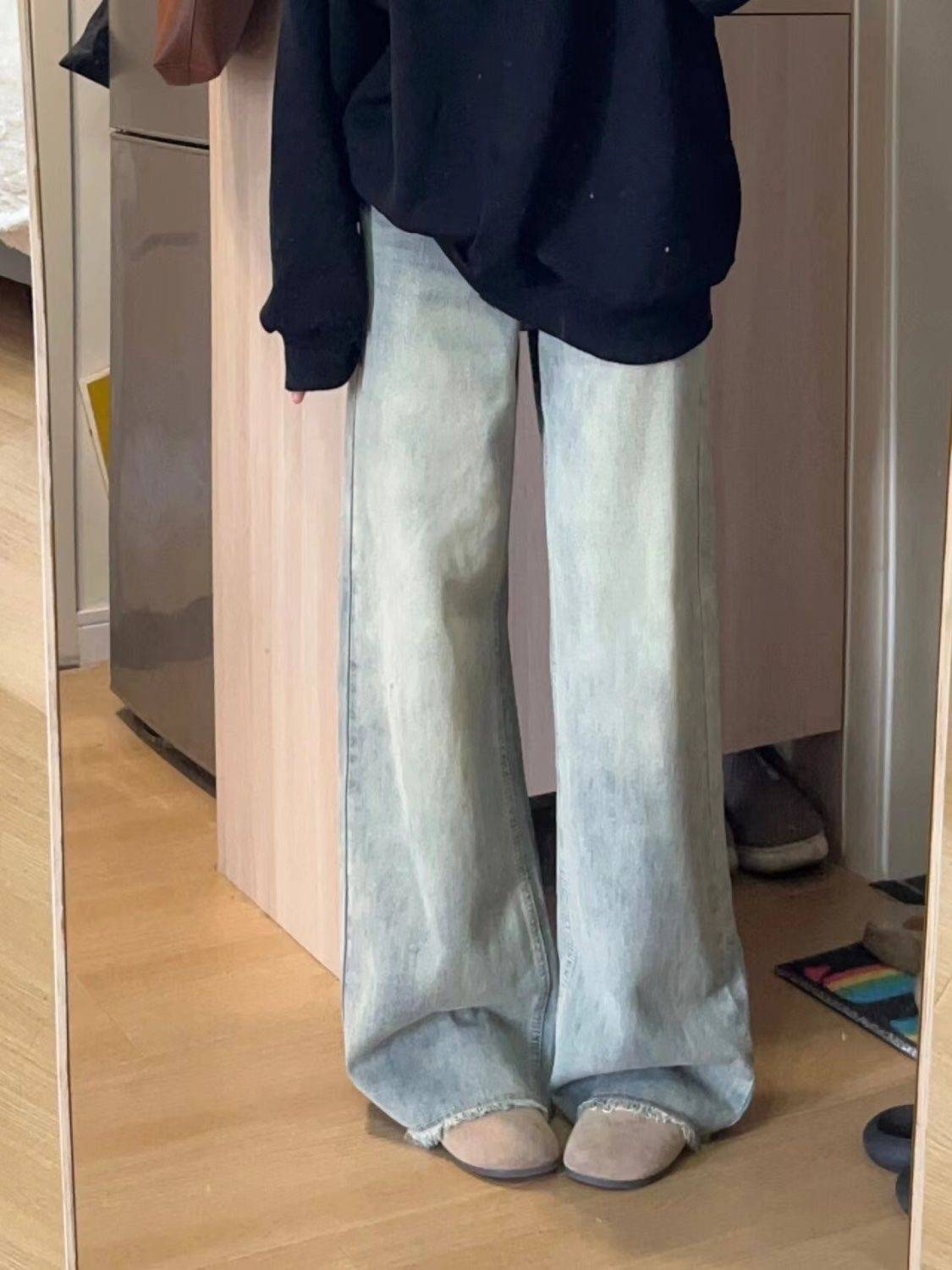 美式复古做旧毛边阔腿高腰牛仔裤女春夏新款宽松显瘦百搭垂感长裤