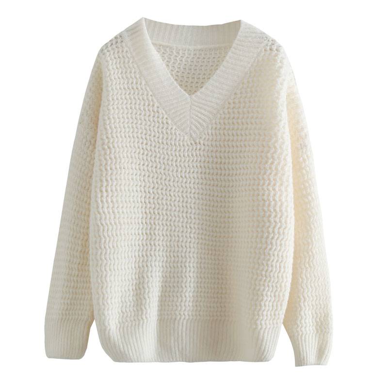 日系白色V领小麻花套头毛衣宽松针织衫外穿秋冬新款小个子