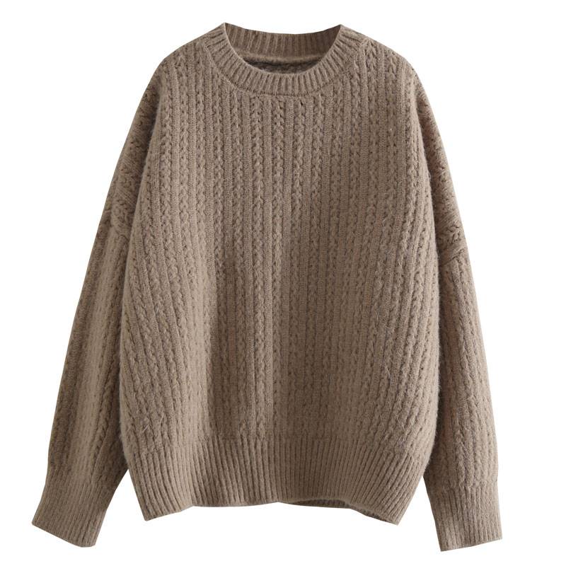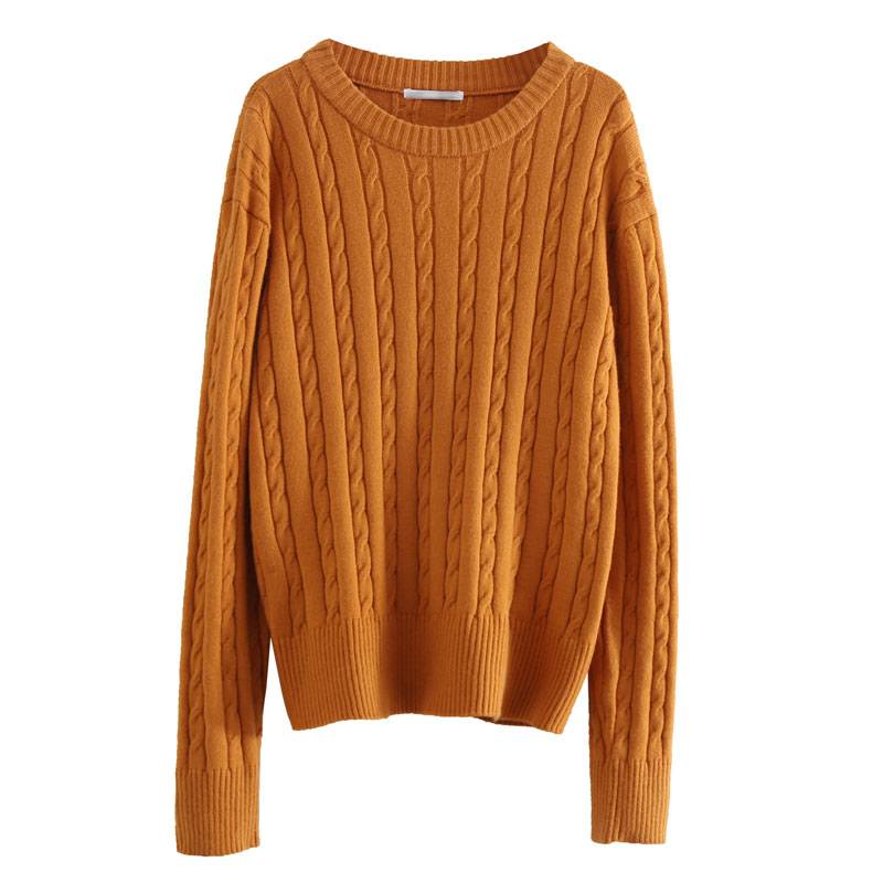 日系驼色圆领套头细麻花毛衣针织衫上衣外穿学生女秋冬新