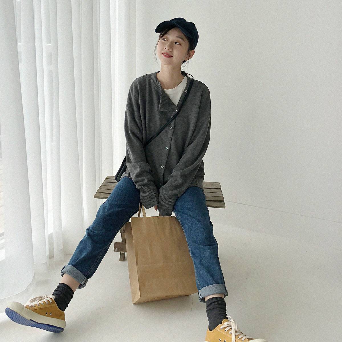 复古斜扣针织开衫毛衣外套学生女宽松百搭秋冬新款