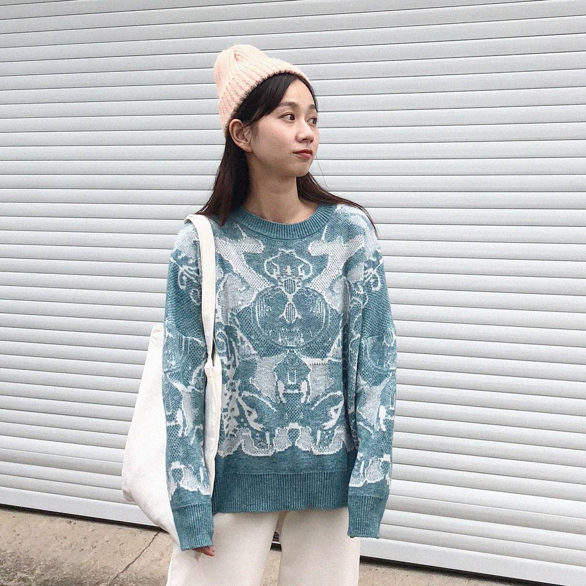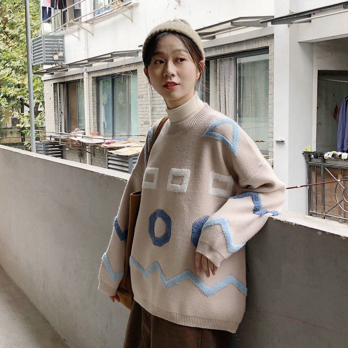 日系网红同款长颈鹿套头毛衣针织上衣女学生宽松秋冬新款