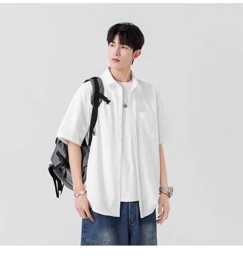 冰丝短袖衬衫男款夏季2025新款休闲工装衬衣男生潮流外套