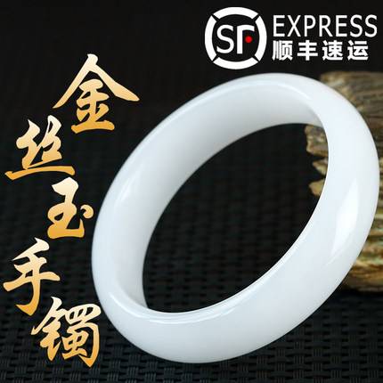 和田玉手镯女玉镯子天然金丝玉羊脂级圆条细条白玉手镯