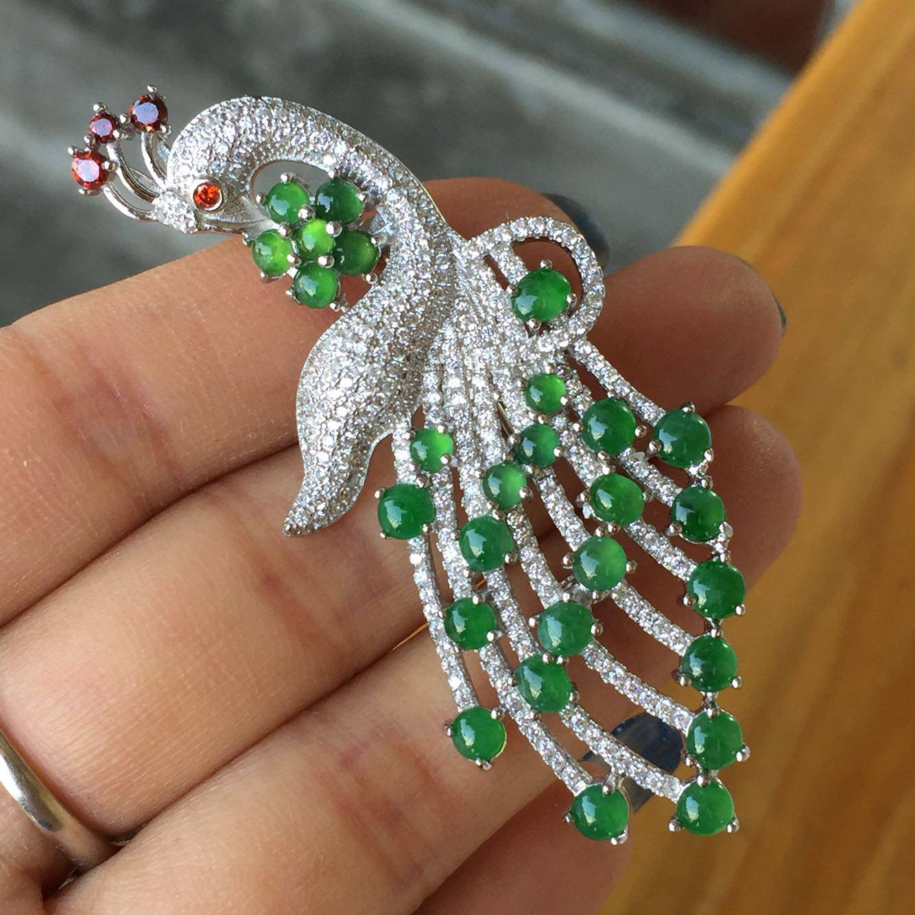 翡翠胸针天然翡翠胸针孔雀胸针满绿胸针吊坠胸针二合一工厂直销