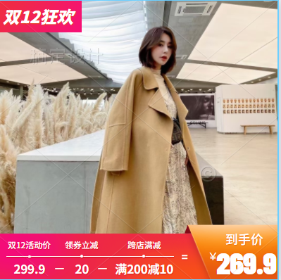 2020年秋冬新款韩版双面呢手缝长款羊毛大衣单排扣中长款毛呢外套