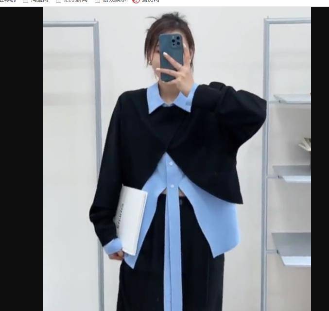 大码设计感小众长袖衬衫女秋季新款胖mm显瘦拼色上衣罩衫两件套