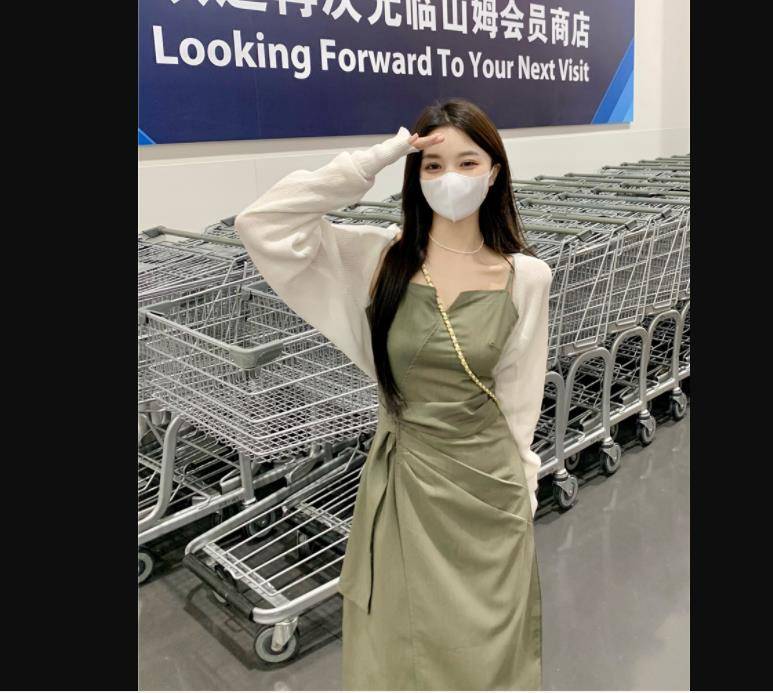 胖mm大码夏季新款设计感法式收腰显瘦气质吊带连衣裙套装两件套女