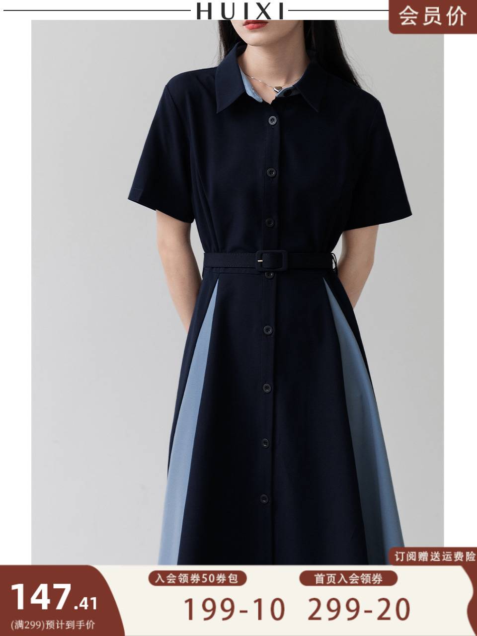 假一赔十撞色假两件短袖连衣裙女夏新款复古盐系别致设