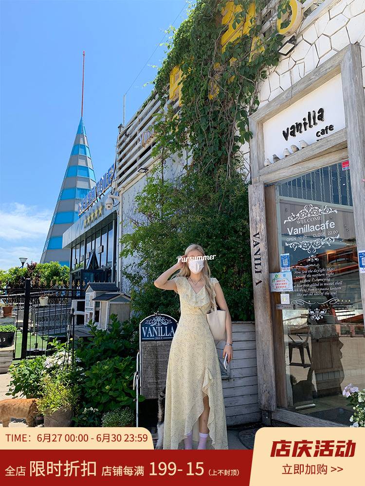 朴夏 法式碎花连衣裙夏季女小众设计感开叉收腰茶歇长款裙高级感