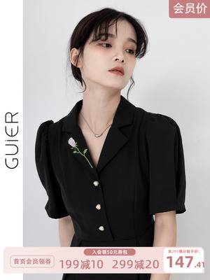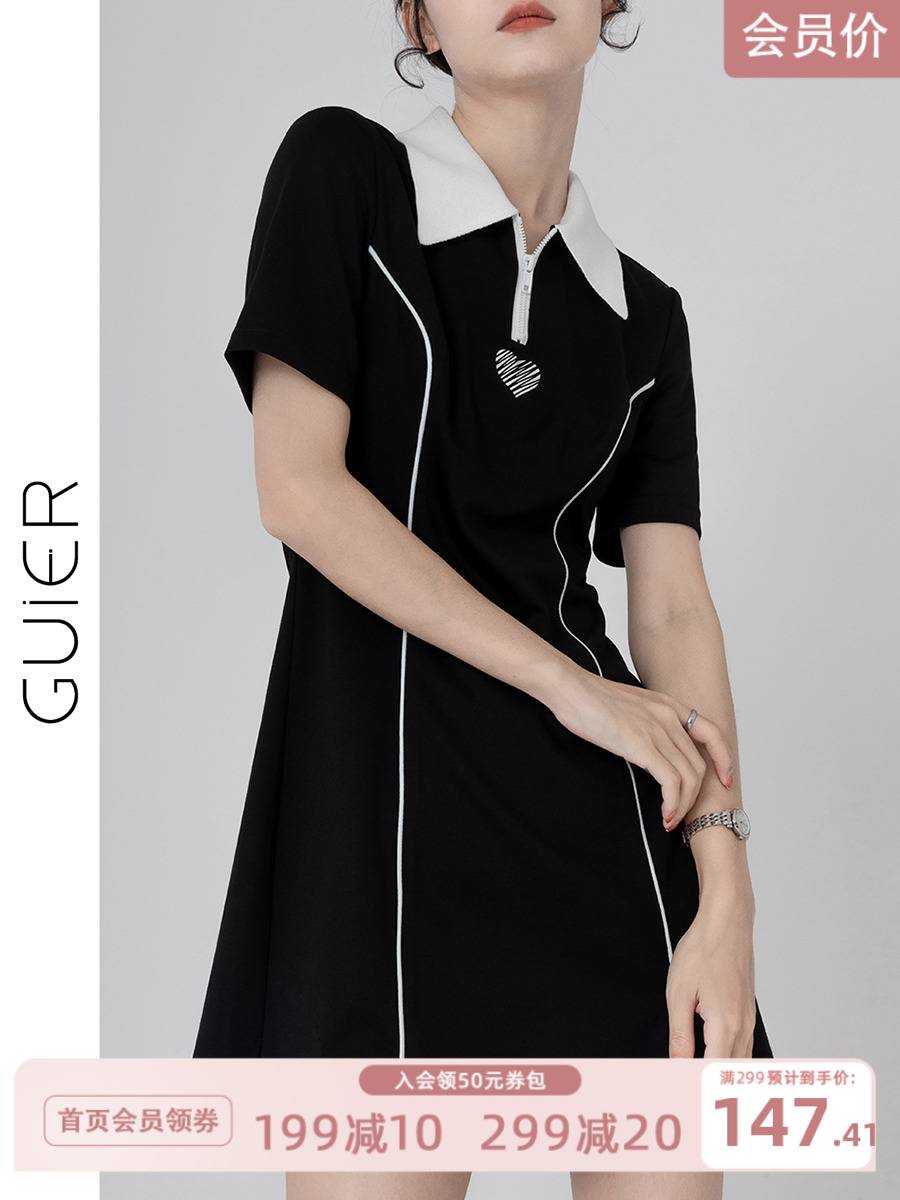买一送一黑色polo领爱心连衣裙2022年新款夏季设计感小众裙子女