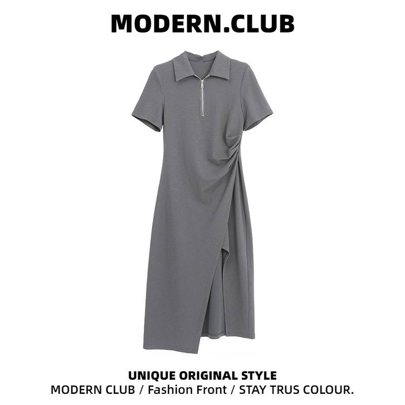 2022新款气质polo连衣裙女夏季法式高级感小众设计中长款开叉裙子