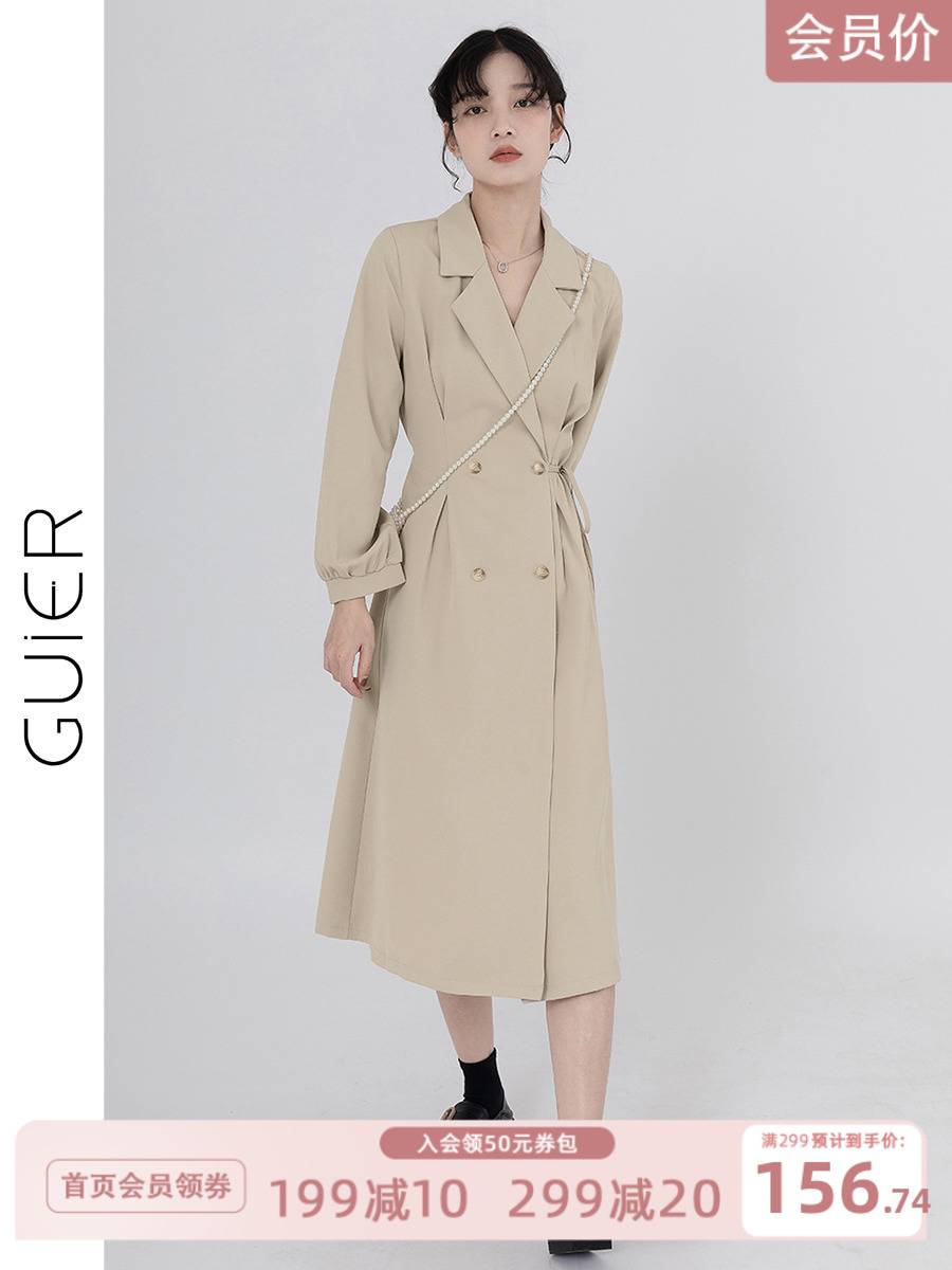 买一送一西装连衣裙女2022春季新款法式高级感温柔茶歇长款裙子