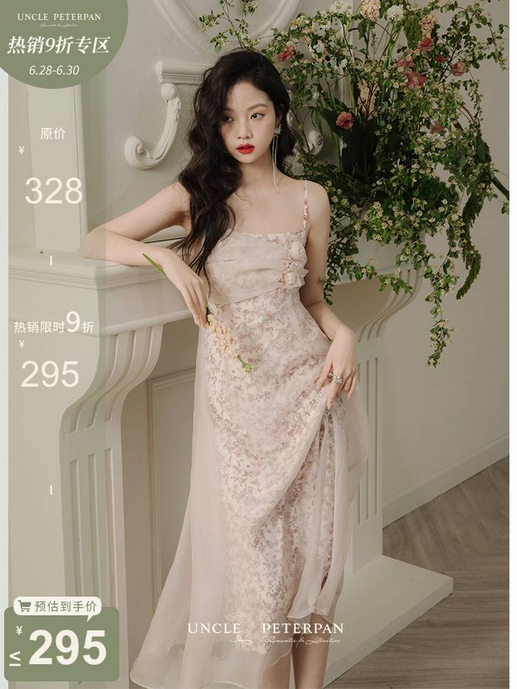买一送一《春日盛宴》浪漫显瘦手工花朵吊带仙气欧根纱连衣