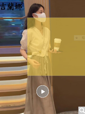 欧货时尚洋气娃娃领连衣裙女2021年夏季新款 气质收腰泡泡袖a字裙