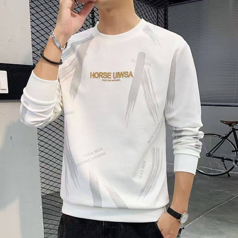 男装春季新款纯色休闲卫衣男 圆领套头长袖t恤男学生上衣