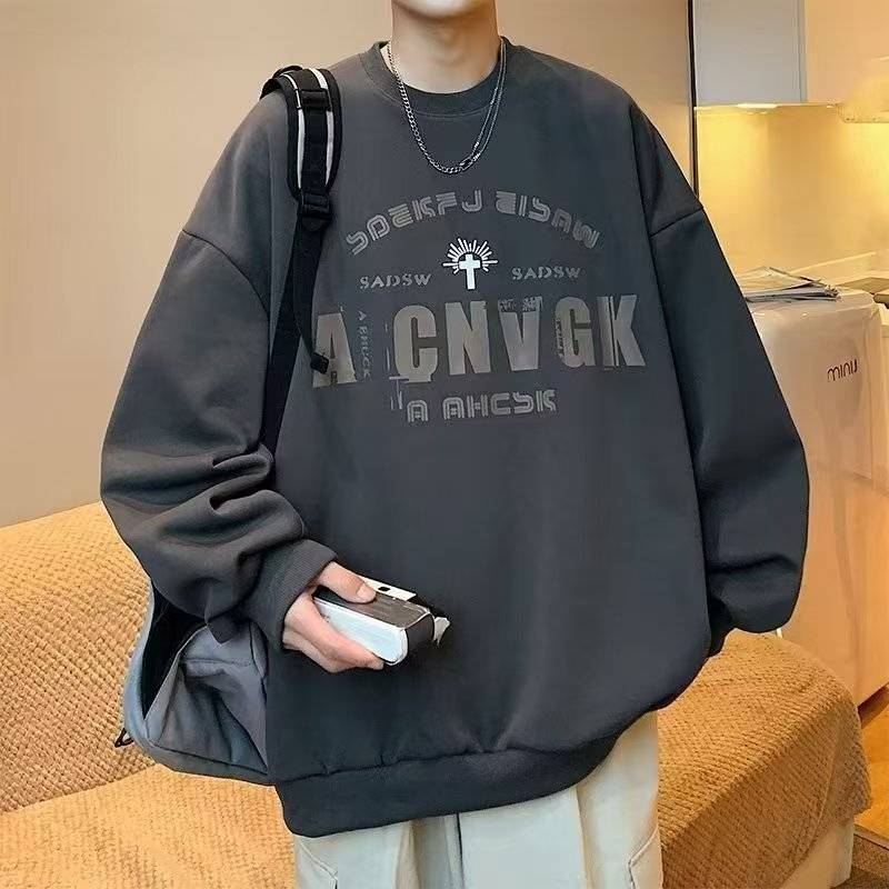 2020春款男装 仿羊羔绒针织男式卫衣 圆领纯色卫衣男宽松