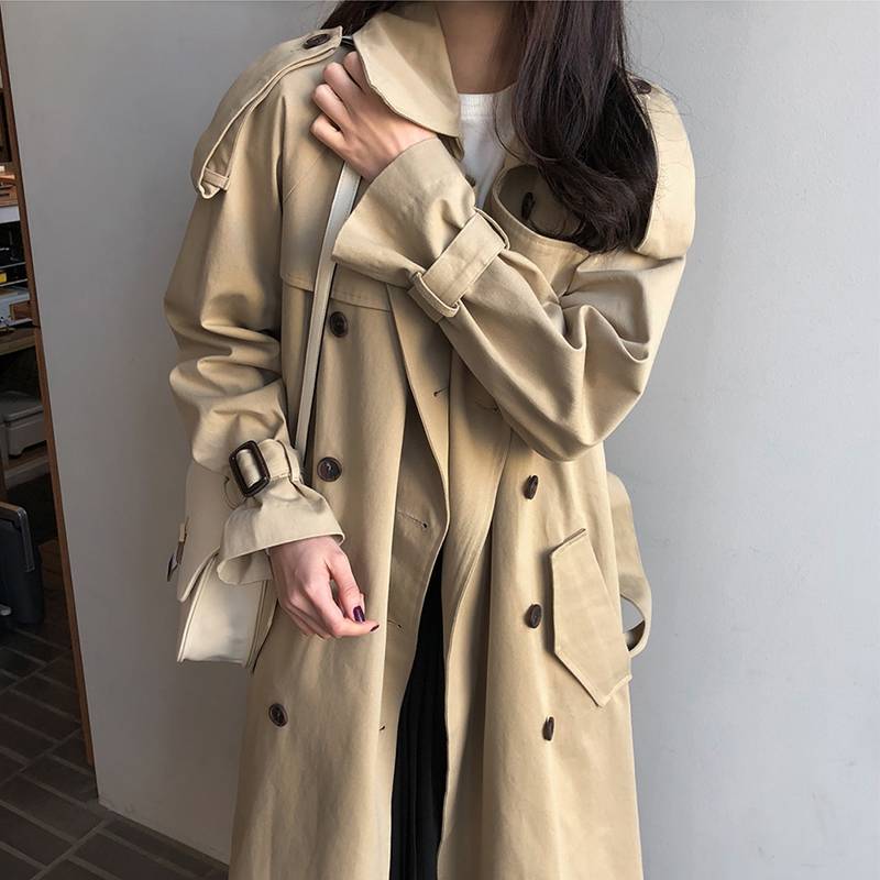 韩版2021风衣女装ins中长款流行加棉厚春秋外套大衣赫本风小个子