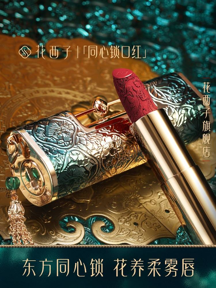 【同心礼】花西子同心锁口红/浮雕雕花哑光唇膏女滋润浆果红棕色