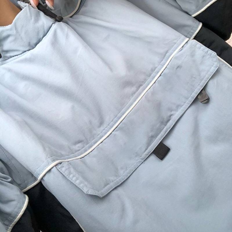 【反季清仓】美式复古雾霾蓝色拼接套头棉服女潮ins秋冬新款婋肆