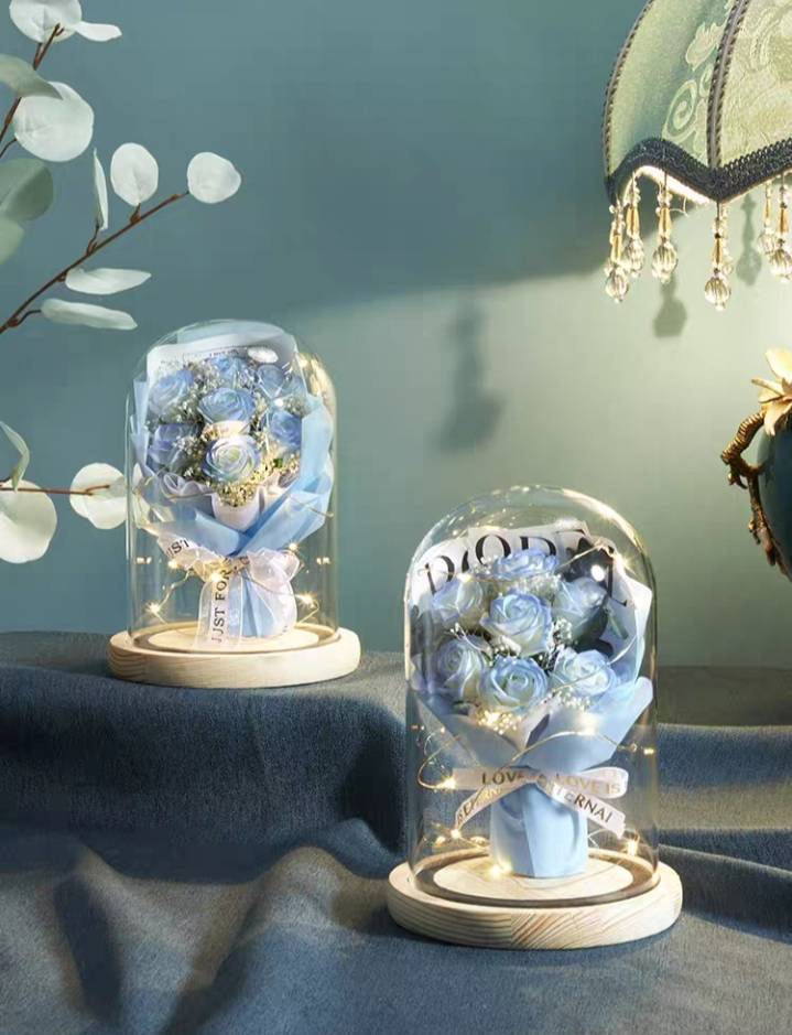 碎冰蓝满天星干花 礼物 玻璃罩花束