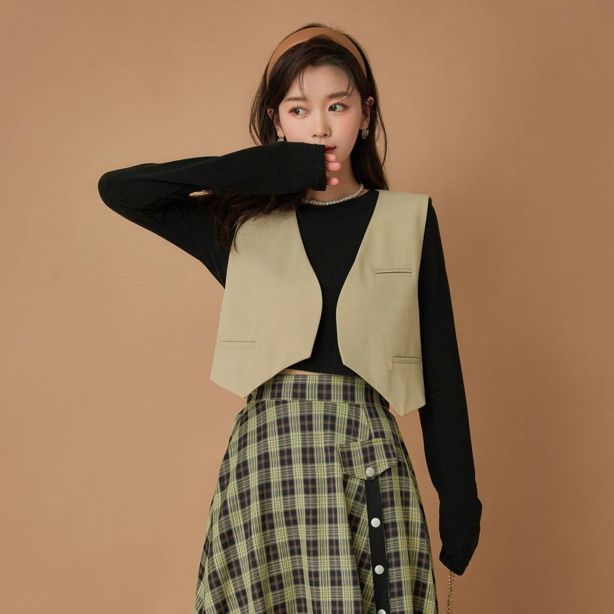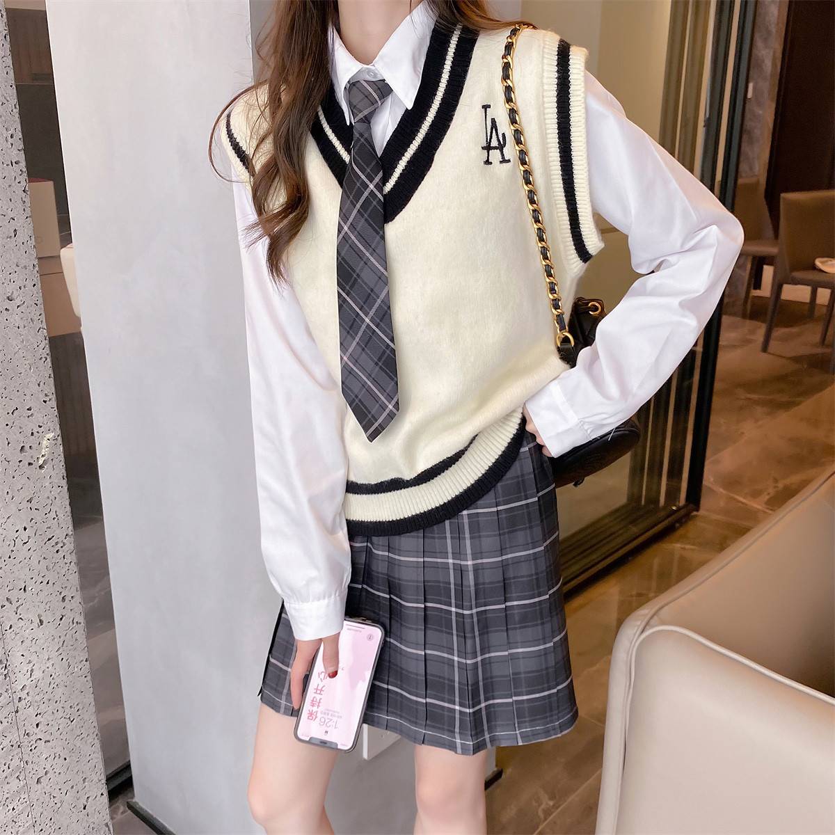 2021年套装女时尚秋装新款日系马甲衬衫领带半裙四件套百搭潮