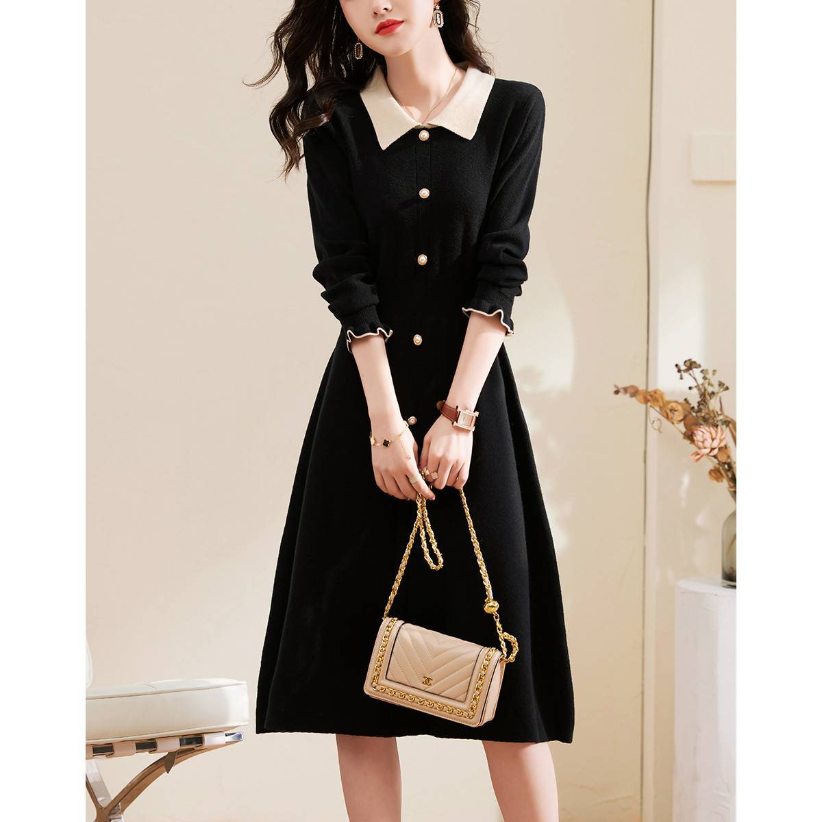 连衣裙2021新款女时尚百搭气质优雅撞色针织保暖显瘦精致裙子
