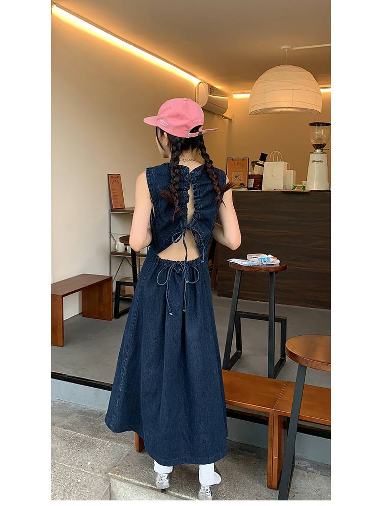 辣妹牛仔连衣裙2023夏季新款ins抽绳镂空小众设计感