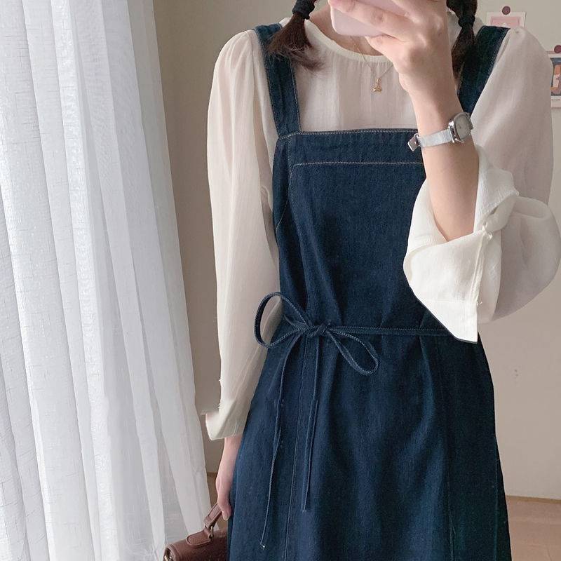 春秋新款可盐可甜酷女孩洋气简约牛仔连衣裙