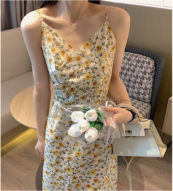 韩版连衣裙女2021春夏新款时尚修身显瘦洋气减龄碎花吊带连衣裙