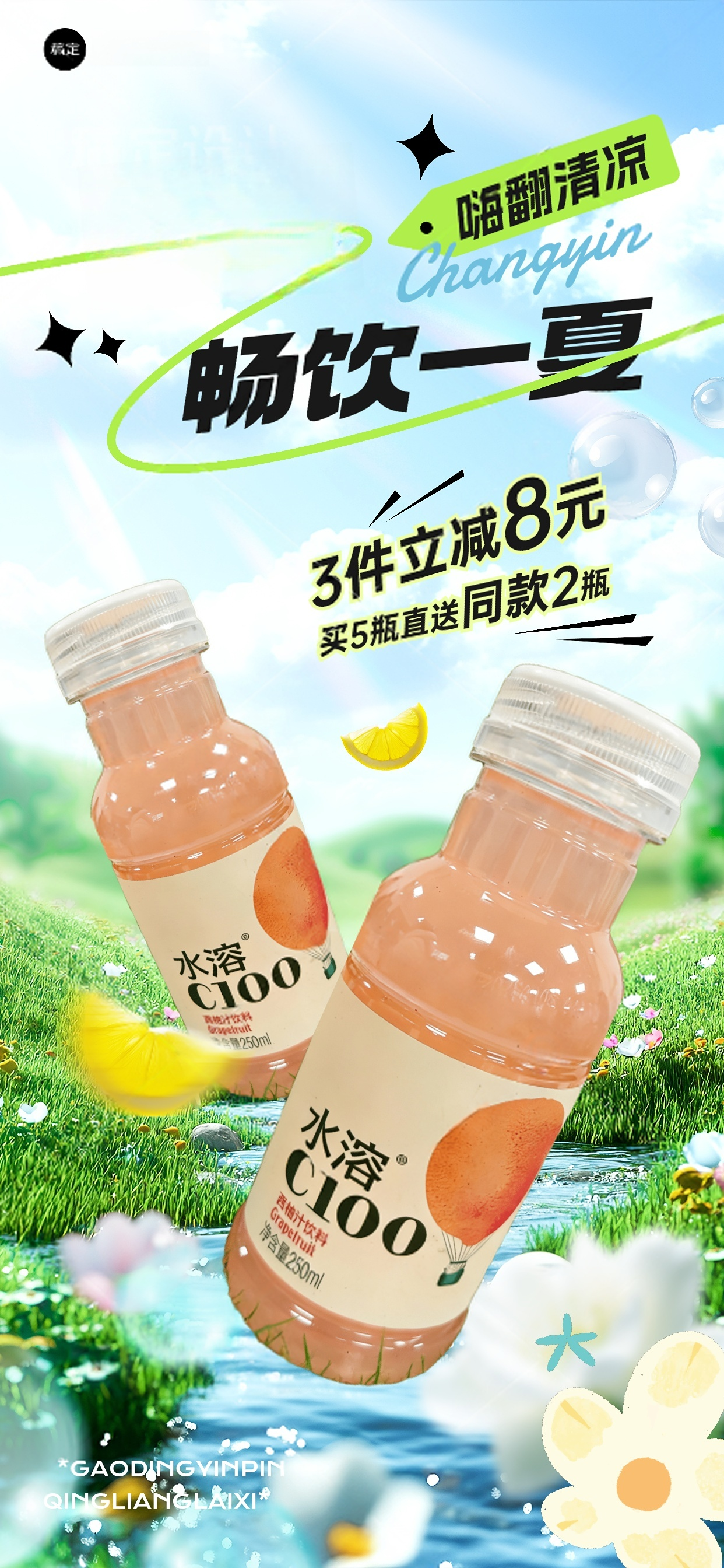 农夫山泉水溶C100复合果汁饮料250ml*6瓶柠檬西柚味清爽酸甜饮品