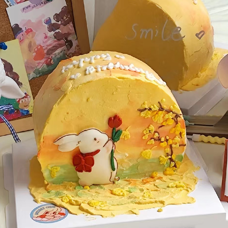 萌趣兔子陶瓷碗 家用可爱少女心饭碗 网红ins风波浪边汤碗早餐碗