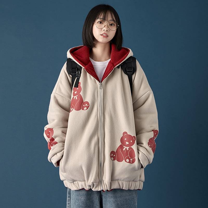 羊羔毛两面穿日系棉服女2020新款冬季宽松加绒ins潮棉衣棉袄外套
