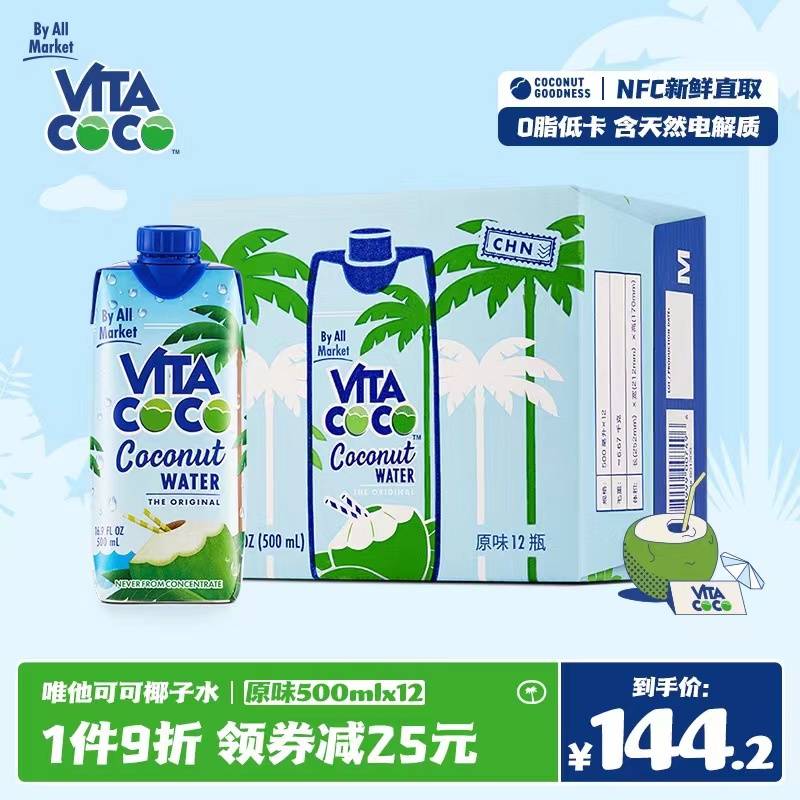 VitaCoco唯他可可椰子水500ml*12瓶饮料进口nfc青椰果汁原味正品