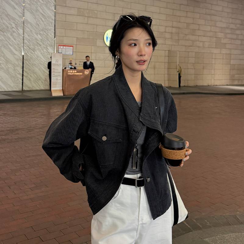 十三行 日落女装斜门襟短外套2025春季新款韩版宽松夹克上衣F6019