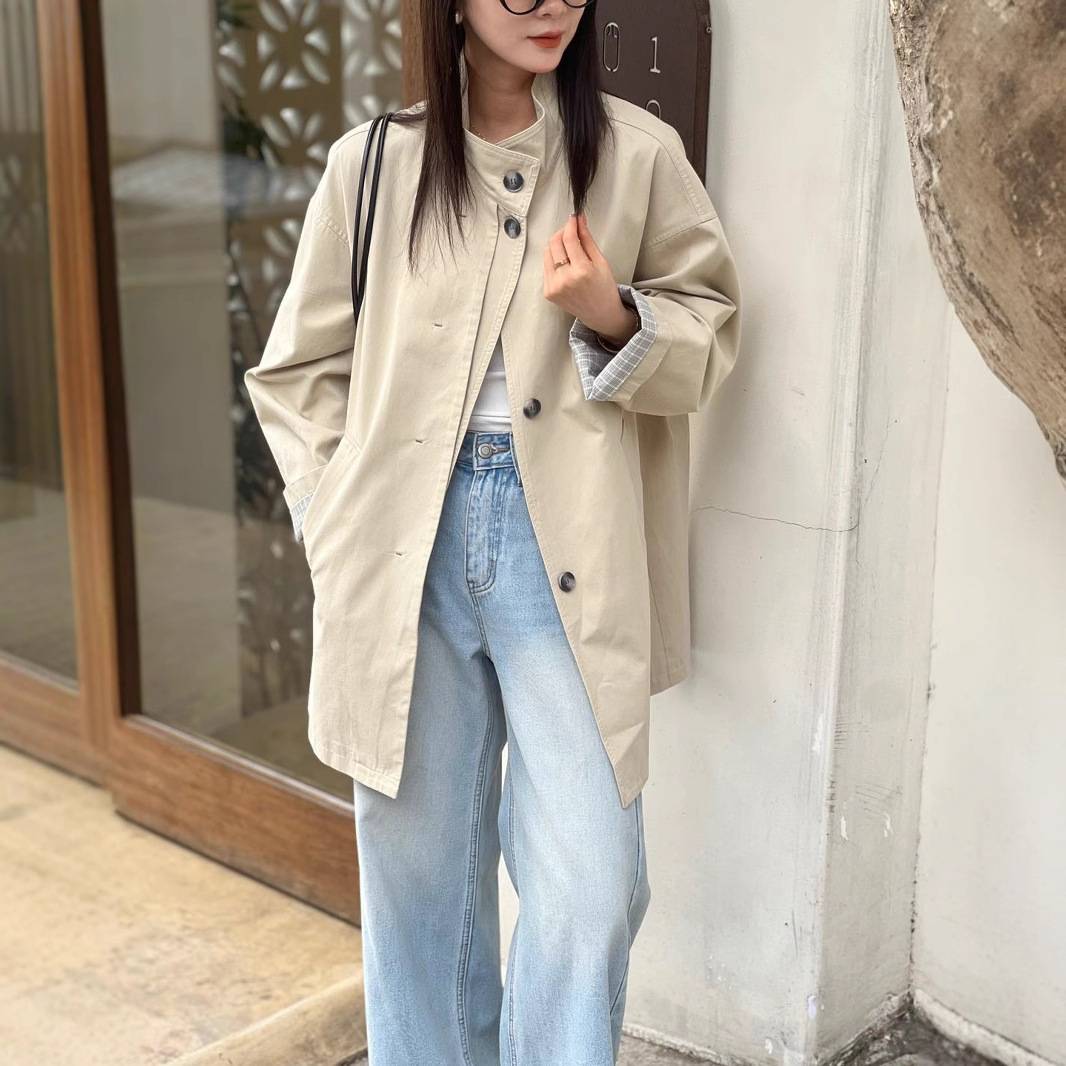 2025春季新款韩版宽松显瘦中长款风衣外套女英伦风高级感经典外套