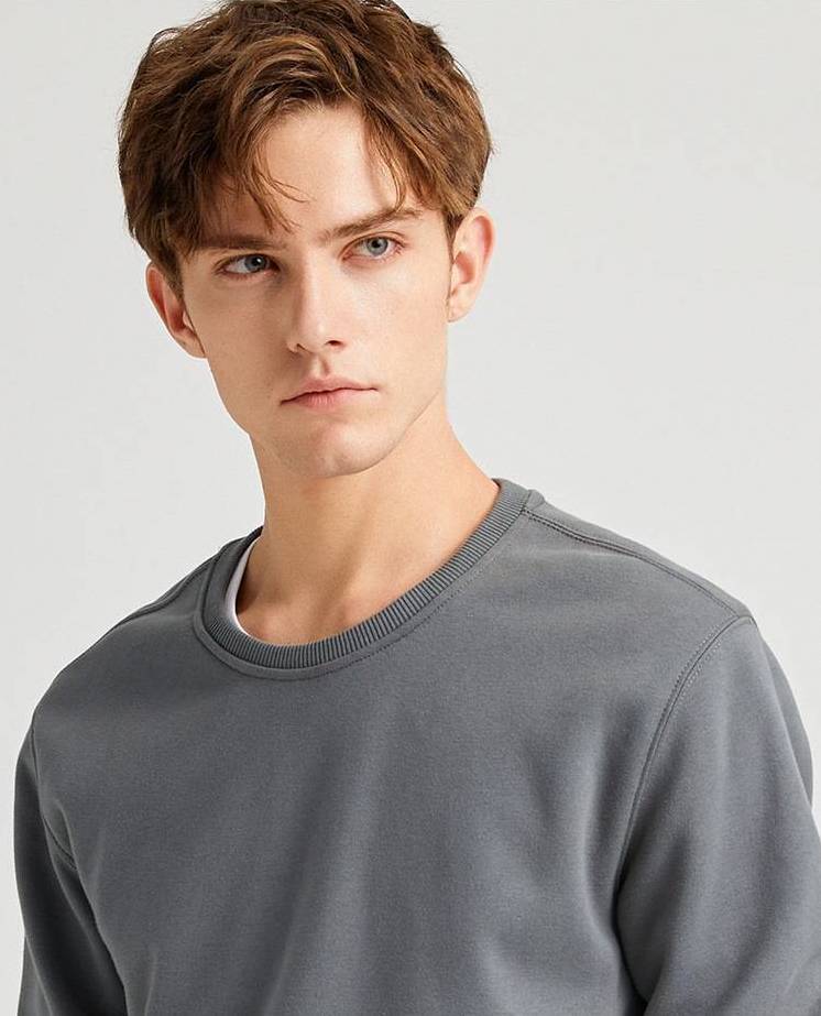 2020春款男装 仿羊羔绒针织男式卫衣 圆领纯色卫衣男宽松