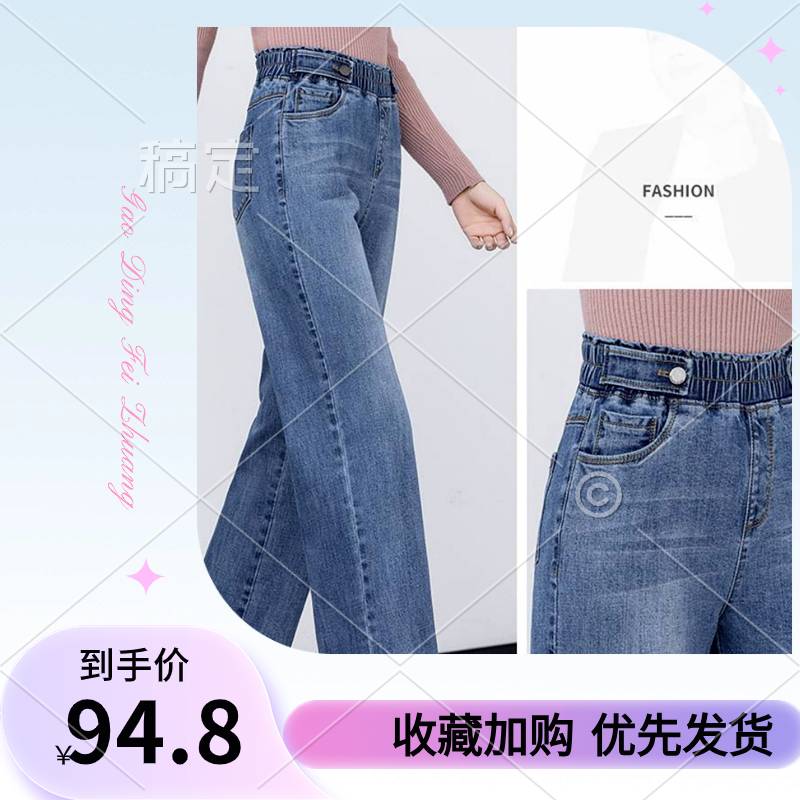 2020春夏新款批发松紧腰高腰牛仔裤女宽松直筒显瘦阔腿长裤