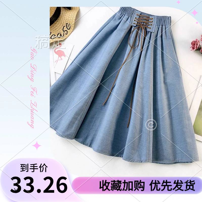 牛仔裙女2019春夏新款中裙高腰半身裙显瘦A字大摆裙文艺气质伞裙