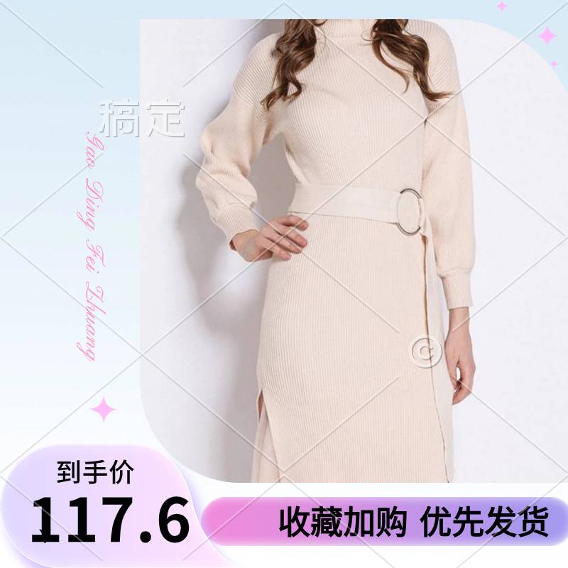 艾尔玛2019秋冬季连衣裙新款针织裙中长款两件套打底毛衣裙