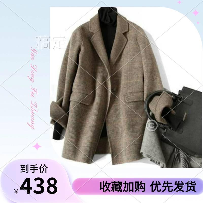 ZOJ手缝羊毛双面绒外套格子大衣女西装新款秋冬毛呢女装