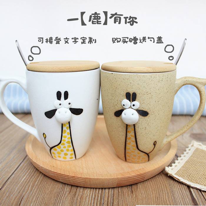 杯子情侣定制陶瓷一对送盖勺照片定制马克杯家用办公室