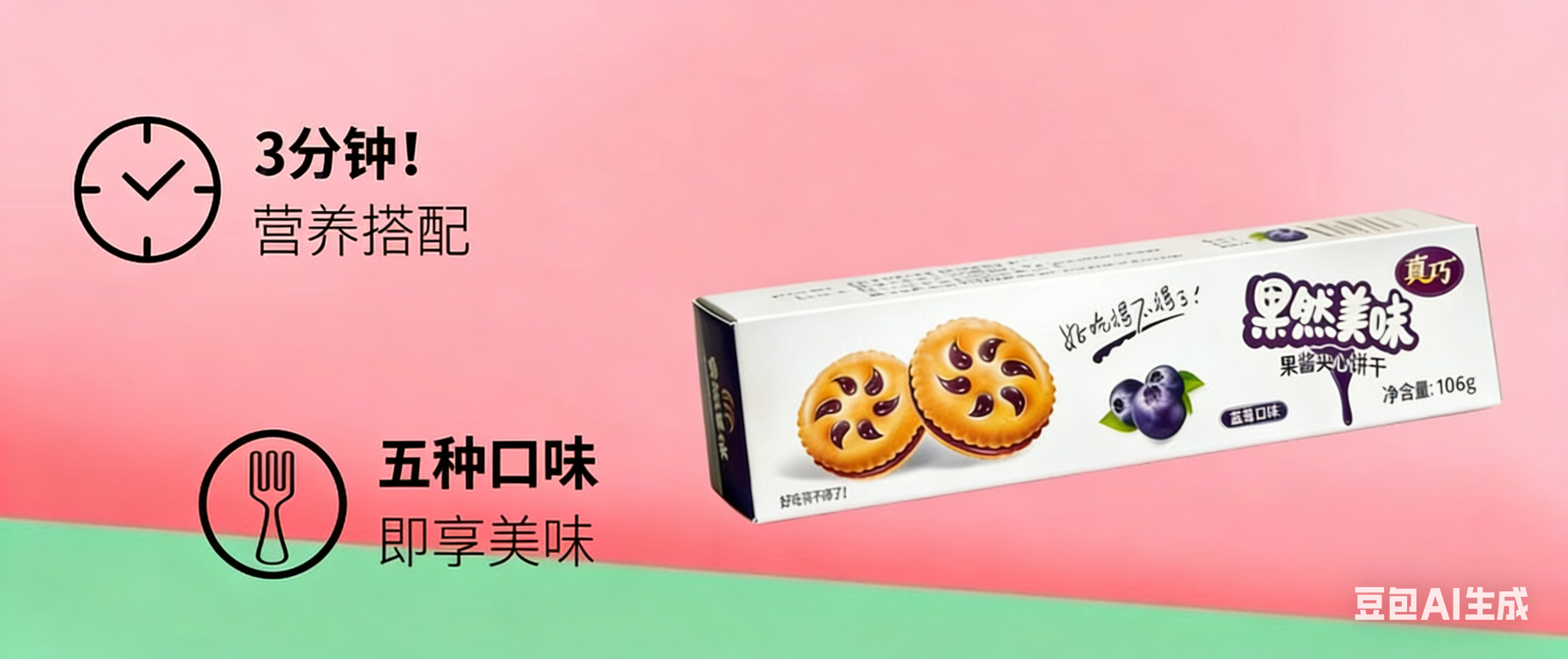 真巧果然美味果酱夹心饼干106g饼干早餐零食多口味食品甜品