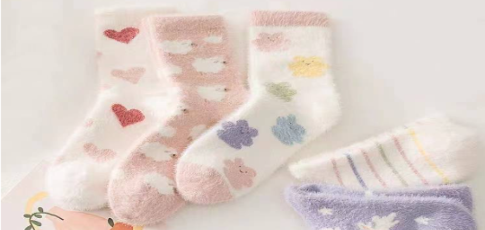 水貂绒冬季女子刺绣加绒珊瑚绒袜