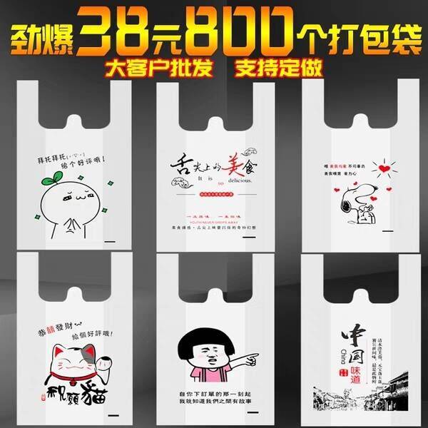 卡通外卖打包袋塑料食品袋一次性方便手提背心袋批发定制logo