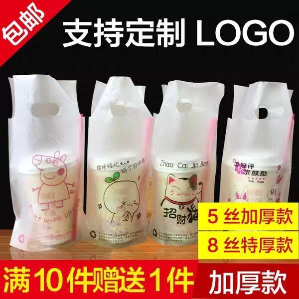 奶茶袋饮料打包袋豆浆咖啡外卖打包杯袋单双杯加厚塑料袋定制logo