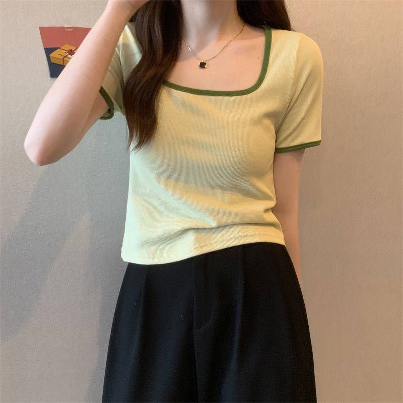 2023年夏季最新款体恤面料舒适显瘦小上衣时尚减龄洋气短袖女