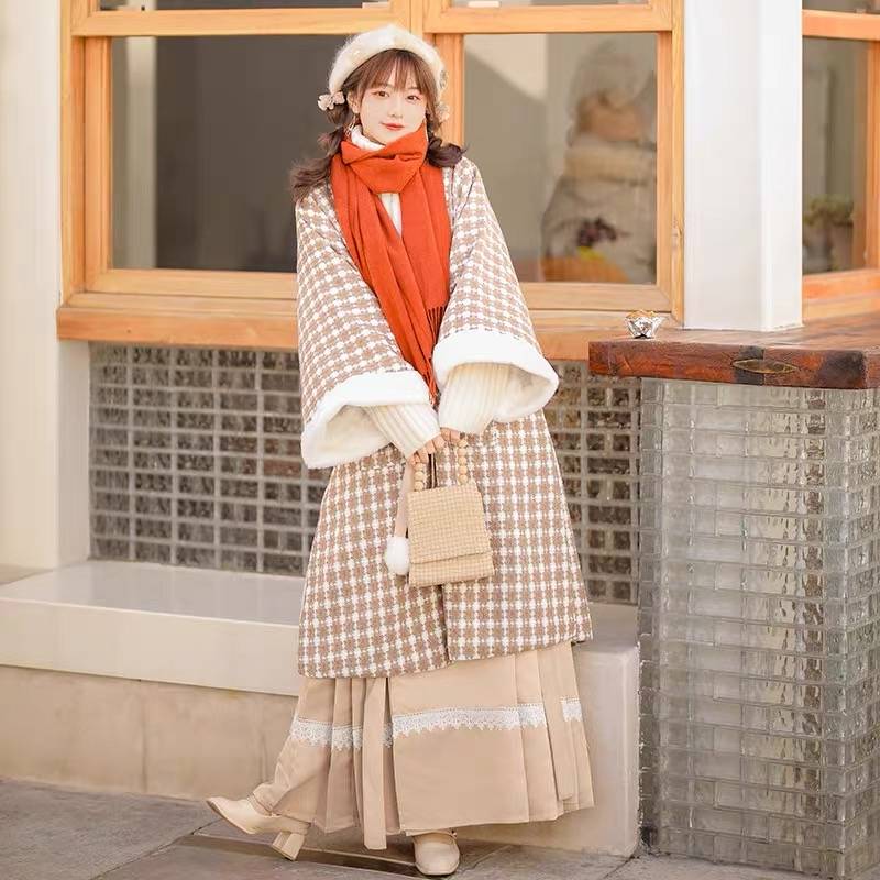 倾雪花眷原创【啵啵奶茶】明制汉服女汉元素长款呢绒外套披风马面