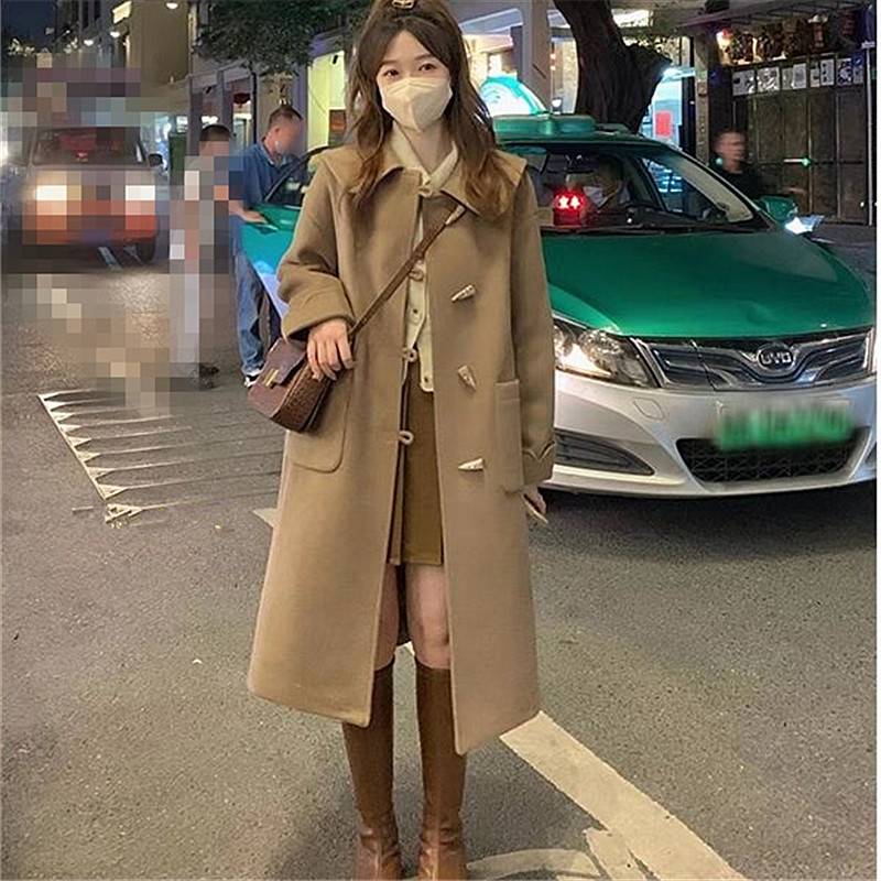 牛角扣日系毛呢外套女2022年秋冬季新款呢子大衣小个子加厚中长款