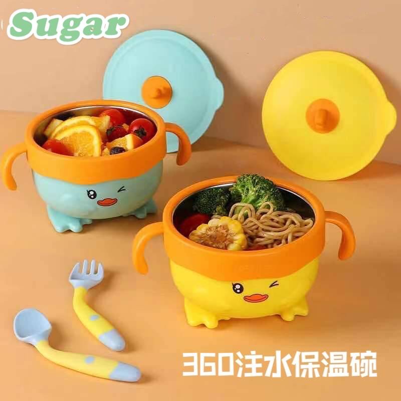 316不锈钢宝宝注水保温碗防摔家用吃饭餐具婴儿辅食碗带吸盘